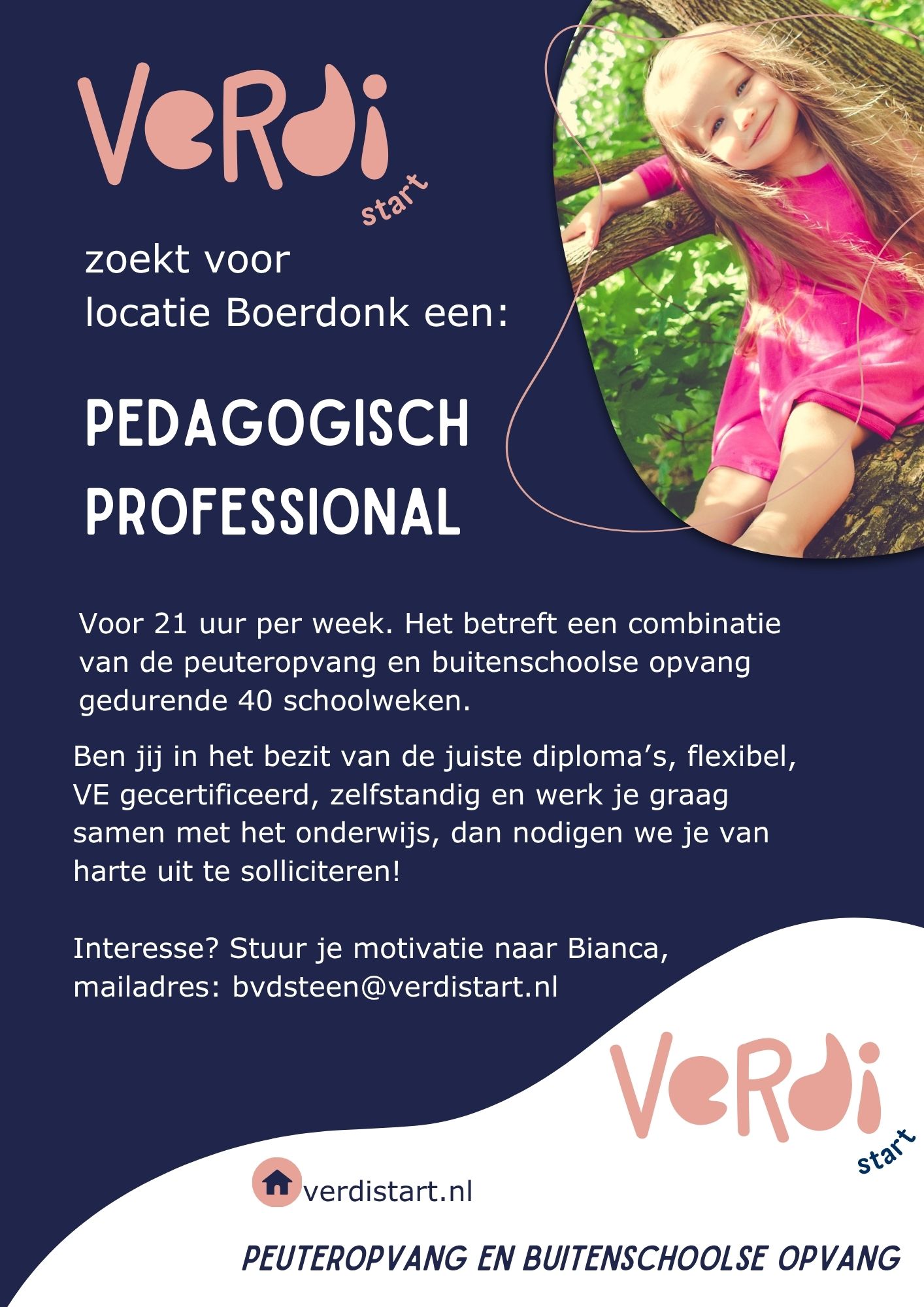 Op dit moment zijn er twee vacatures bij Verdi Start: